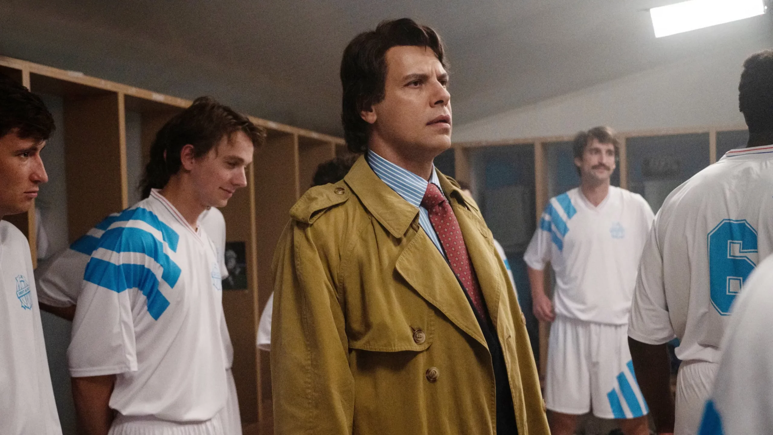 Tapie, c’est plus qu’un biopic en série. C’est surtout l’occasion pour Tristan Séguéla de dépeindre une France qui n’existe plus aujourd’hui : celle des années 60, dont les ramifications se sont étendues jusqu’au cœur des années 90. Portrait à la fois politique, social, économique et culturel de l’époque, les couleurs brunâtres ou au contraire criardes se mêlent aux débuts de Michel Polnareff, aux permanentes des femmes et aux bleus de travail des hommes. Par une succession de détails appréciables (les œufs durs sur les comptoirs des bars, le Ricard à gogo, le plastique à foison et les bouteilles consignées), Séguéla nous replonge dans une période largement fantasmée, avec ses bons comme ses mauvais aspects. La reconstitution est complète et permet une immersion immédiate, tout en jouant avec le côté affectif des souvenirs de son public. La série est une porte à la nostalgie d’un certain passé qui se veut authentique et motivée par une connexion réelle à cette ère révolue. On pourrait presque se prendre à rêver de cette France sur la voie d’une américanisation évidente, promettant la fortune à qui aurait suffisamment de culot… quitte à jouer la carte de l’absence de moralité ou du mensonge « cool ». En clair : Tapie nous la rend émouvante, et parvient à rester loin de ses images d’Épinal trop revues.