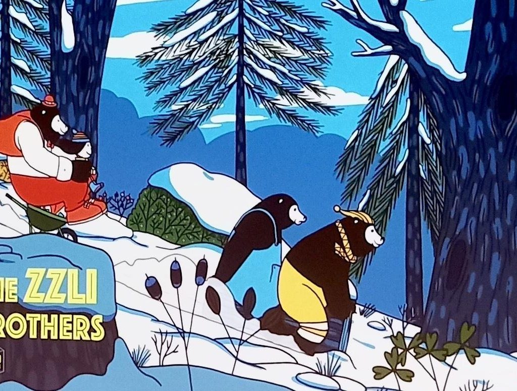 Un ours vêtu de rouge pâtissier, rescapé de la tyrannie ; un autre vêtu de jaune, rescapé du réchauffement climatique ; un dernier vêtu de bleu, rescapé de zones de guerre. Anna, une petite fille au fond des bois, s’ennuie toute seule et choisit d’héberger ces nouveaux venus chez elle. Les quatre personnages s’apprivoisent les uns les autres, non sans mal, et apprennent à se comprendre grâce au partage de leurs histoires respectives au travers d’entraînantes séquences musicales. Basé sur un conte écrit par Alex Cousseau, Les Frères Zzzli nous replongent dans un cocon aux accents nostalgiques qui parvient à aborder des sujets compliqués d’actualité compliqués à hauteur d’enfant.