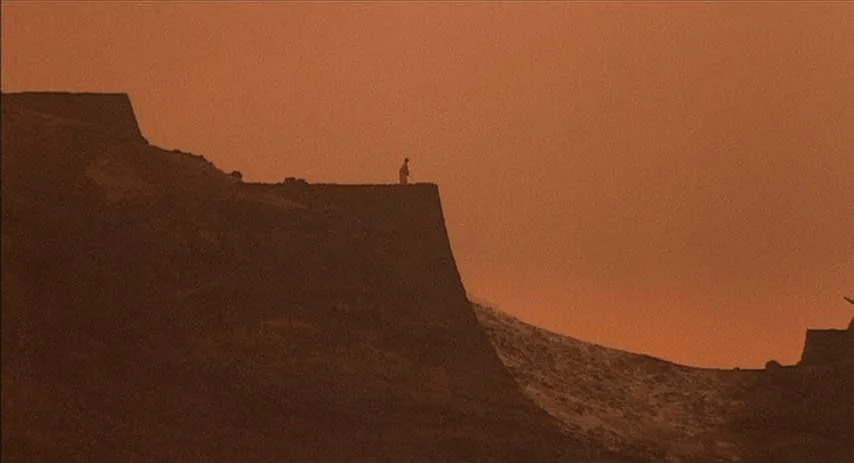 La déchéance du seigneur Hidetora est magistrale : lui qui sort de son château en feu, fend la foule qui l’observe et se méfie de cet ex-seigneur de guerre, puis s’engage seul et fou sur les terres volcaniques qui entourent sa demeure sous le regard de son fils. C’est sûrement la scène la plus importante du film.