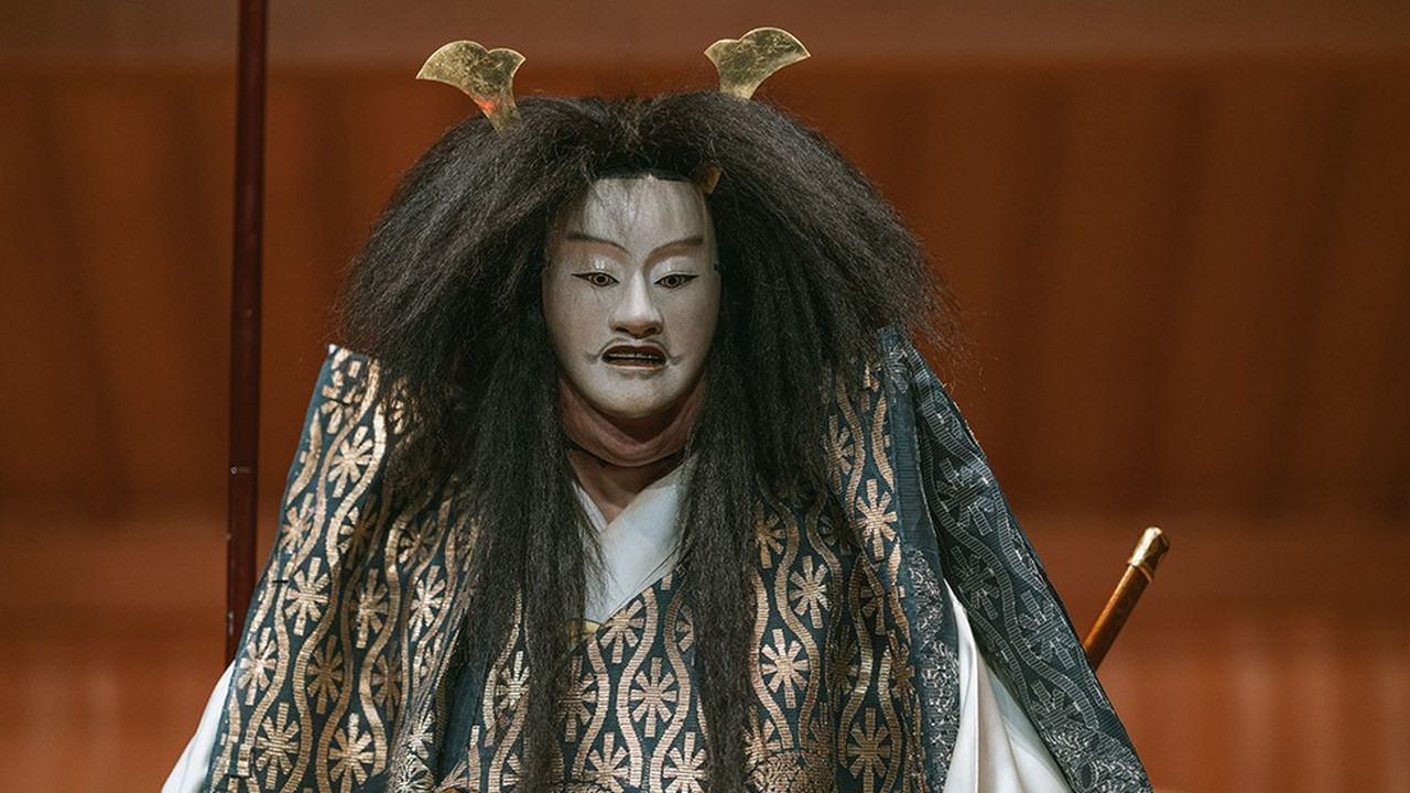 Pour les incultes comme moi avant cet article, permettez-moi un peu d’humansplaining. Le théâtre Nô au Japon s’apparente à un style très lissé, fait de codes de narration et de jeu bien précis. Il peut souvent s’apparenter à une forme de dramaturgie classique destinée à un public aristocrate. Les visages sont affublés de masques bien codifiés et les costumes, tout comme les décors, restent plutôt sobres.